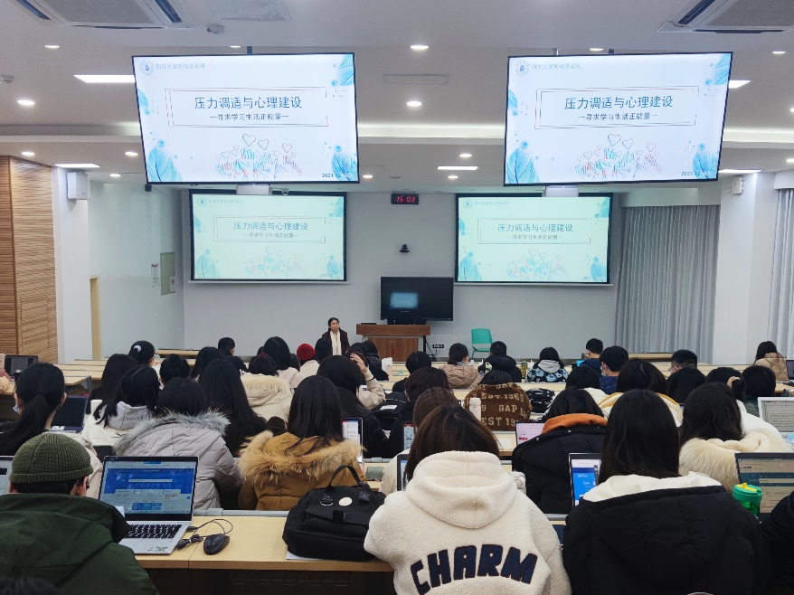 为加强公司硕士研究生心理健康建设,促进同学们在学习、生活和工作等方面的身心健康发展,增强其情绪管理能力和抗压能力,2021年12月17日下午三点,公海gh555000aa线路检测中心在基础教学楼C座203教室顺利开展了研究生综合素质课。本次课程以“压力调试与心理建设”为主题,由公海gh555000aa线路检测中心社会学与心理学系刘艳副教授主讲,公司2021级全体硕士研究生参与。
