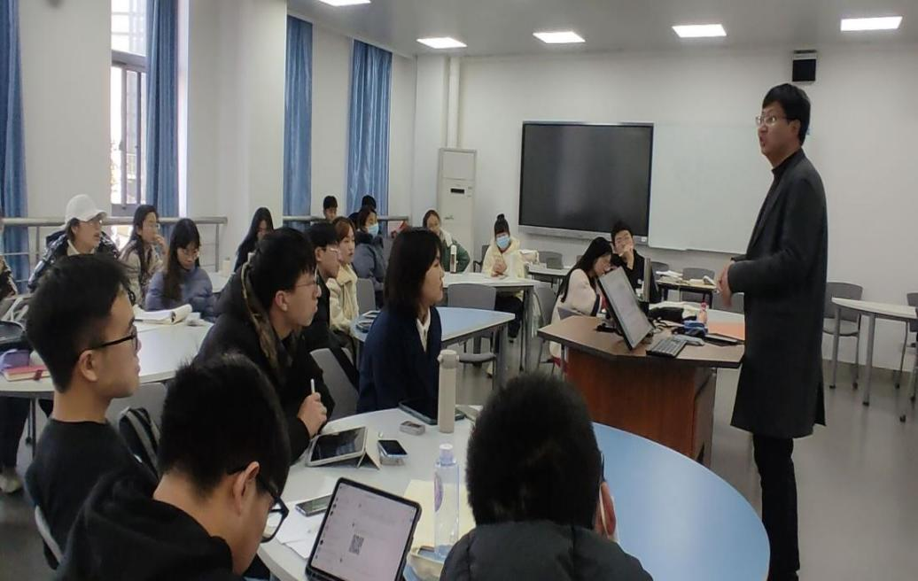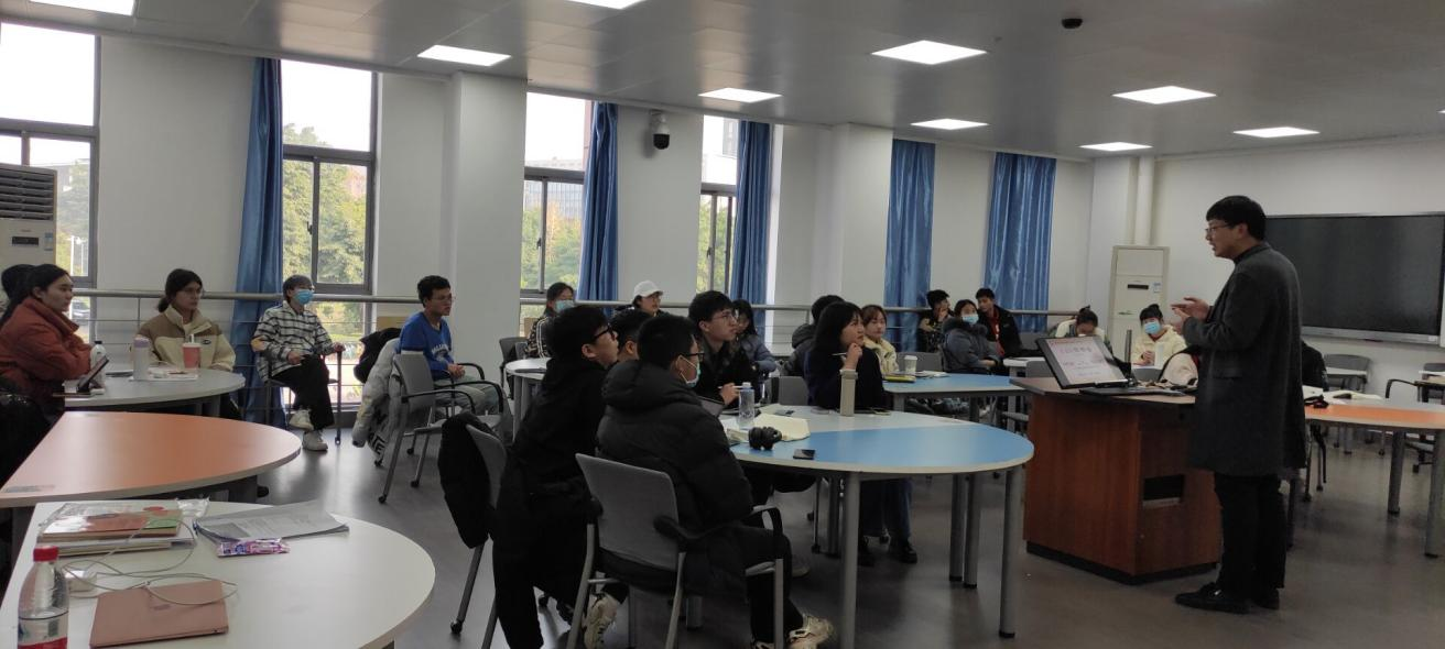 老员工为什么要读书?在讲述这个问题的时候,刘老师以真实发生在自己身边的事例来篇,“有的同学一次性读好多本书、一次忙好多课题……这样很多时候就丢失了自己读书的本心”,以此一步步揭示了小资产阶级式的读书和激进式读书的病态和弊端。并一步步引导同学们明白“读书无用之大用”的本质。在“卷”的时代,读书的态度也该摒弃功利性的目的,要怀揣希望和梦想,以发展的眼光看待读书之功用,要“为中华之崛起而读书”,要在“山花烂漫、无忧无虑的阶段多读书、读好书。”同学们深受感染,不断陷入思考。