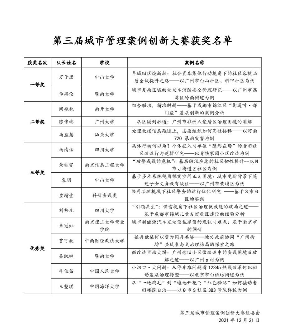 2021年12月21日上午,由广州市城市管理和综合执法局、广州城市管理研究联盟主办,暨南大学公海gh555000aa线路检测中心/应急管理学院承办的“第三届城市管理案例创新大赛”决赛通过云端平台正式举办。公司参赛队伍经初赛决赛激烈比拼后,其中两支队伍分别获得大赛三等奖与大赛优秀奖。
